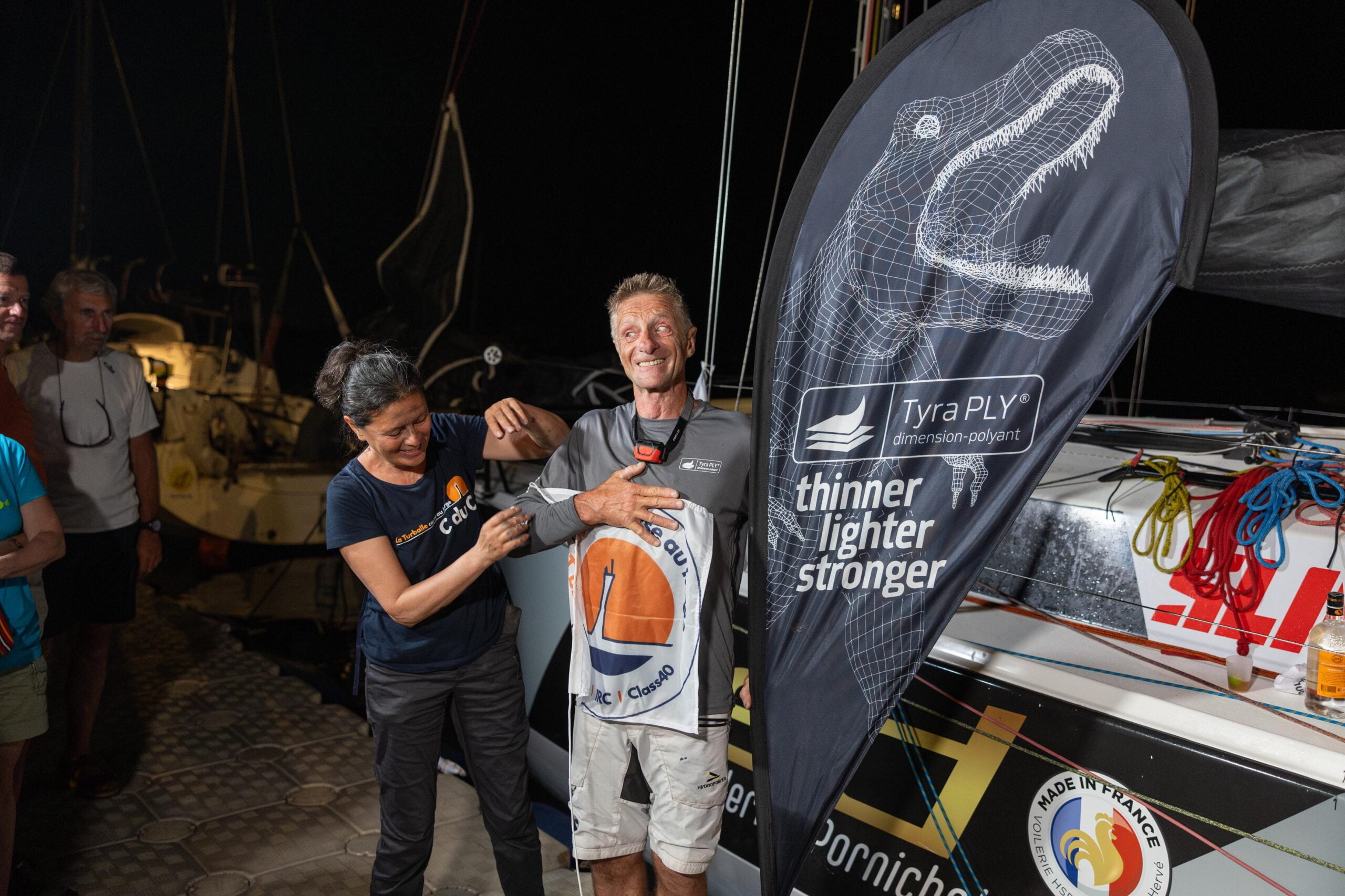 J’ai trouvé qu’on avait pas mal de vent, comparé à l’édition de 2022. J’ai l’impression d’avoir eu plus de vent. Niveau sportif, je suis assez content. Normalement, je fais 5ème si je ne me trompe pas. J’avais calculé le temps de Paolo et j’avais regardé 4h TU, ça pouvait le faire si le vent se maintenait et non, ça ne s’est pas passé. Et j’avais un autre objectif qui était de jouer avec les autres JPK 10.10. Bon, Régis est complètement intouchable et bravo à lui. Et il y avait d’autres 10.10 et j’étais content de bagarrer avec eux.